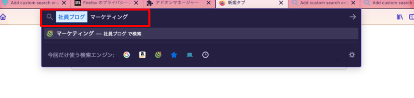 Firefoxのアドオン「Add custom search engine」 とは、検索バーから指定したサイト内の検索ができるようになる機能です。Firefox でAdd custom search engine を導入することで、サイト検索を行うまでの流れが圧倒的に簡単になり、これまで検索にかかっていた時間を短縮することができます。要は自分のための検索エンジンを持てるようになるのです。