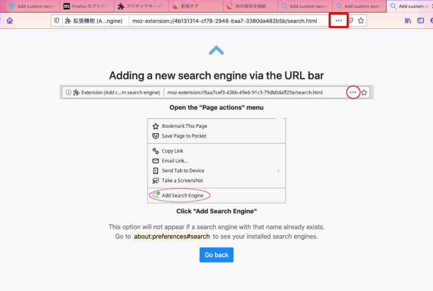 それではAdd custom search engine の使い方を説明していきます。Firefoxを使ったことのない方は、普段使用しているブラウザで検索し、まずFirefoxをダウンロードしましょう。