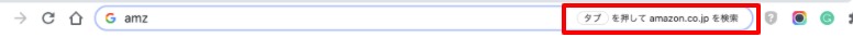 上記の画像のように、先ほど設定したキーワードを検索バーに入力すると、「タブを押してamazon co.jp」が表示されますので、指示通りタブをクリックしてみましょう。