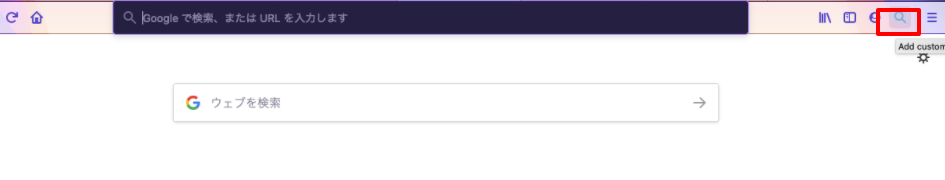 ブラウザ上の右上箇所の虫眼鏡マークからAdd custom search engineの設定画面が表示されるようになります。