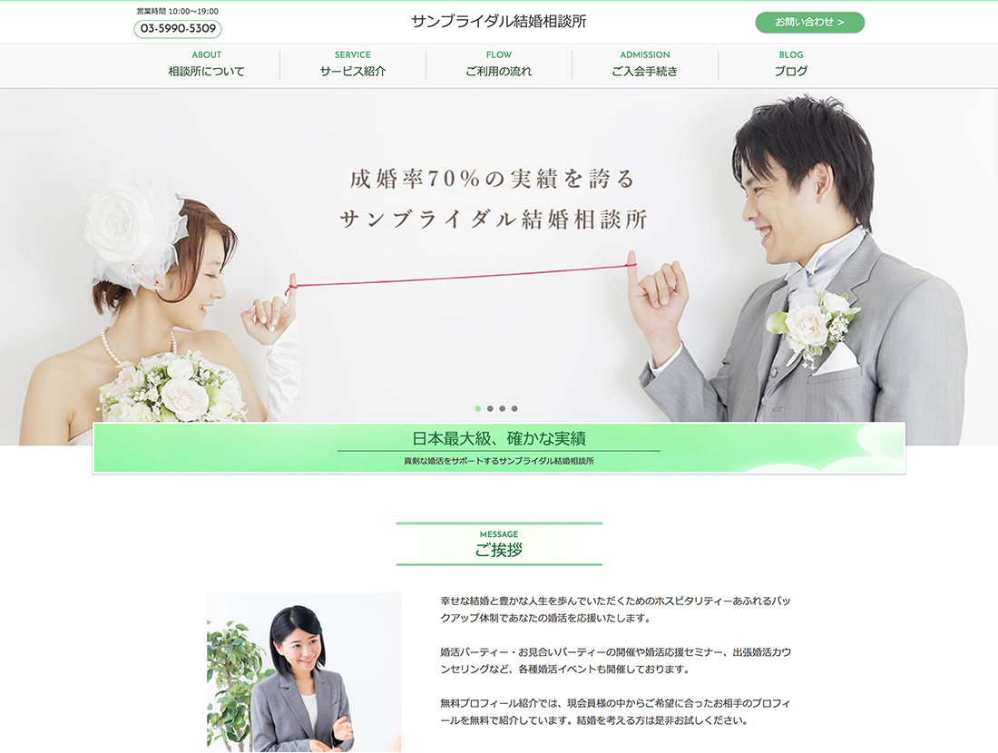 明るくソフトな写真選定、色調、ページデザインで安心なイメージを伝え、コンタクトを促します。