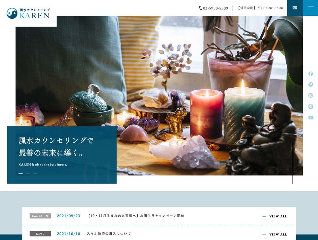 風水を用いたカウンセリングなどのスピリチュアルコンテンツを、対面形式で提供している店舗様にぴったりの型番です。大きな写真や神秘的なフォントが、店舗独自の世界観をしっかりと演出します。