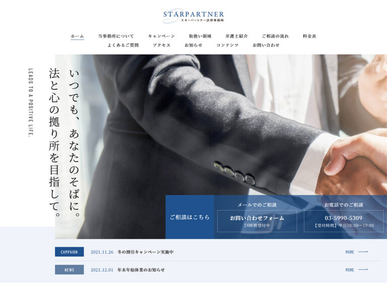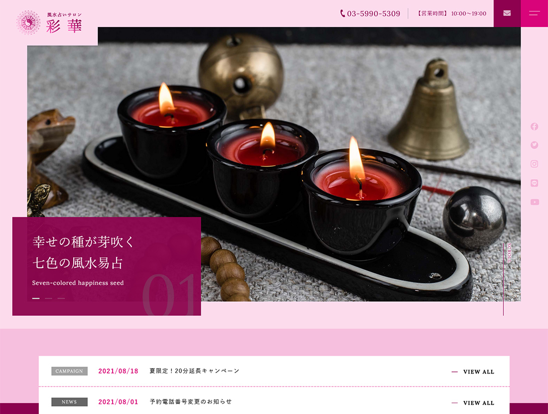 トップページに「お客様の声」エリアを広く設け、閲覧者の離脱を防ぎながら、提供しているサービスへの興味を誘います。占いサロンなどの、初回問い合わせの心理的ハードルが高い業種におすすめです。