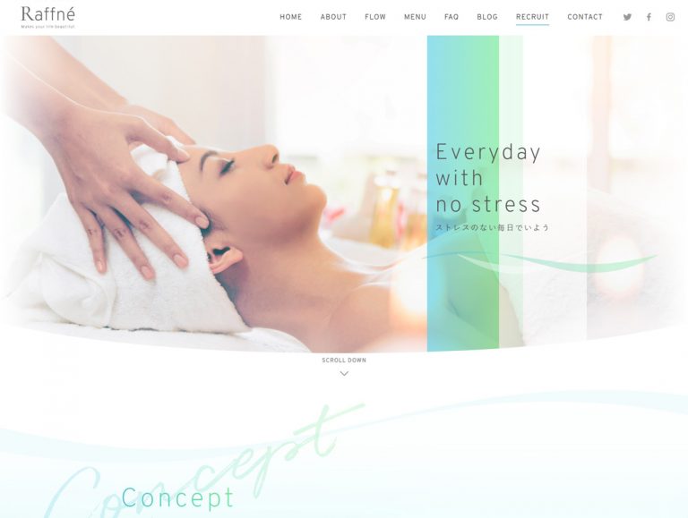 エステサロンやリラクゼーションサロンなど、ゆったりした暖かいデザイン・色味を用いながら、多数のメニューおよび写真を掲載したい店舗様におすすめの型番です。