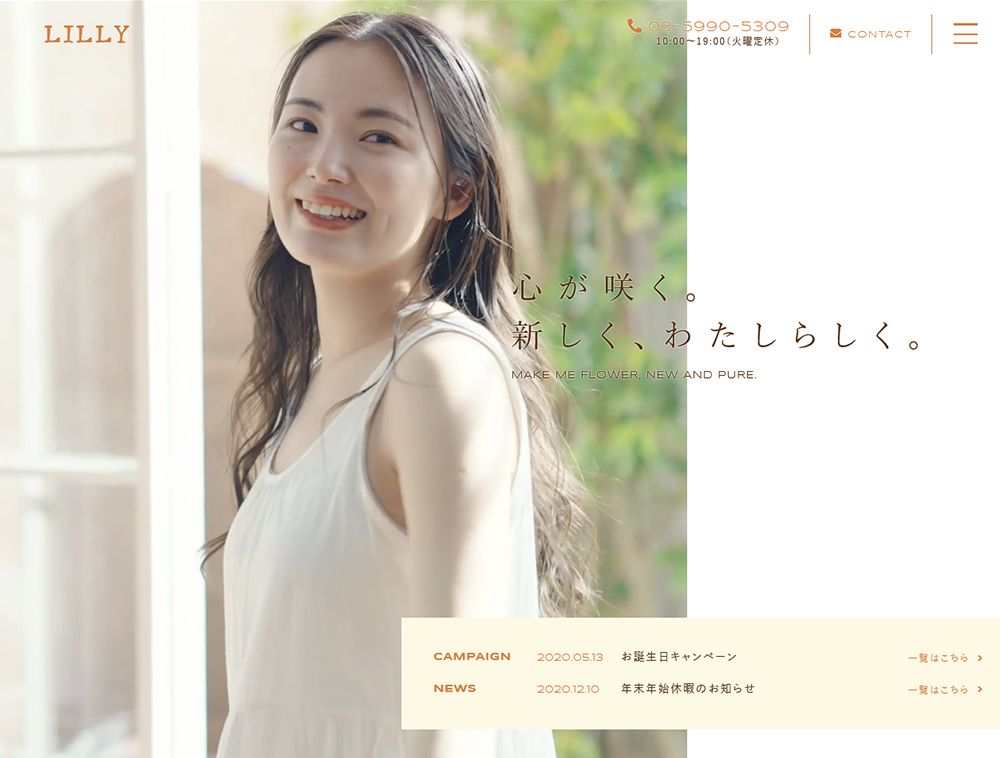 トップページのファーストビューに動画を埋め込み、効果的な情報訴求を可能に。画像では伝えきれないメッセージを表現できるほか、多店舗と差別化をはかることもできます。