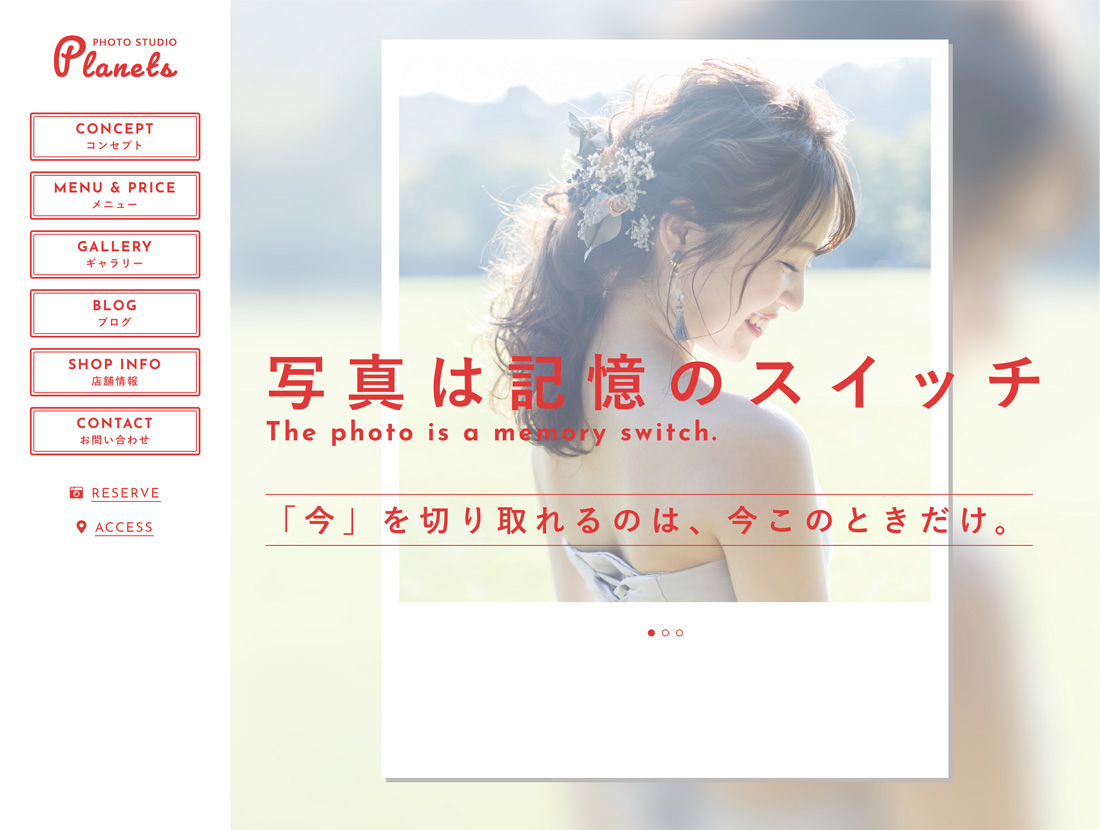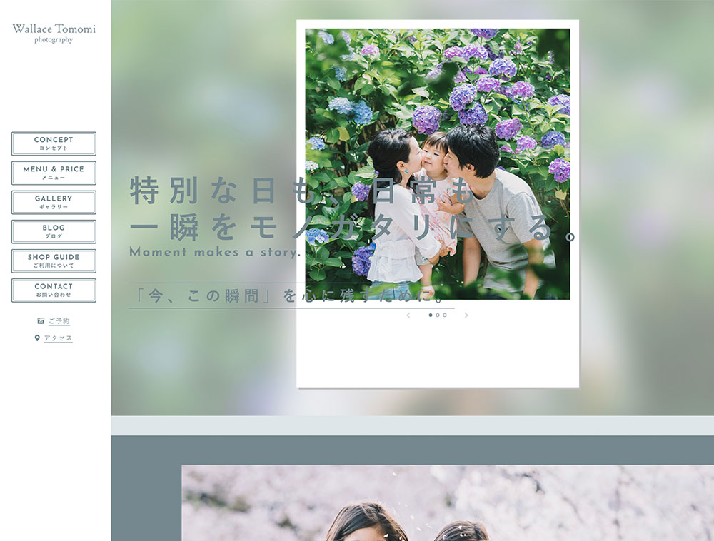 ビジュアルの見栄えの良さが最大の特徴です。写真館やフォトスタジオ、個人のフォトグラファーなどの撮影に特化した店舗様を中心に、幅広い業種に使えるテーマです。
