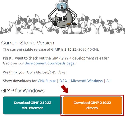 ※リンク先の「Download GIMP 2.10.22 directly」をクリックしてください。