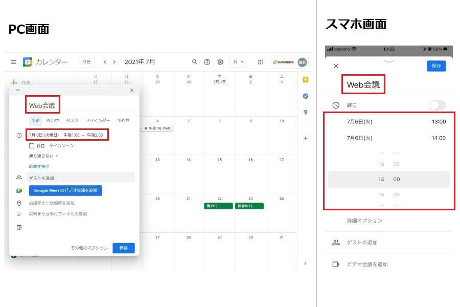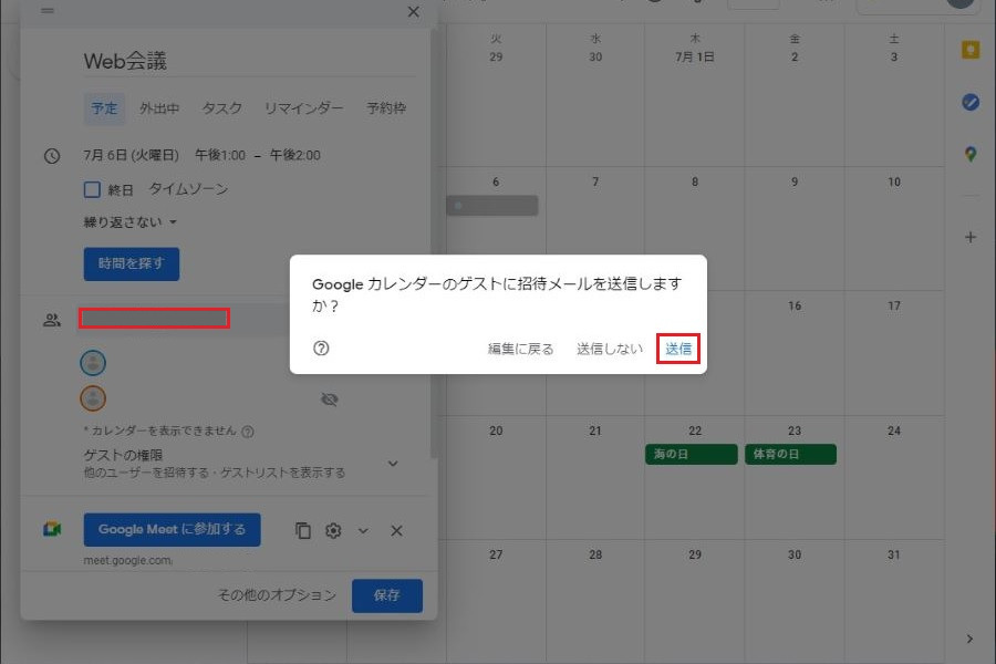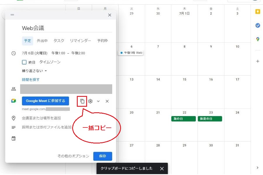(2)Web会議を行う日時にイベントを作成する。