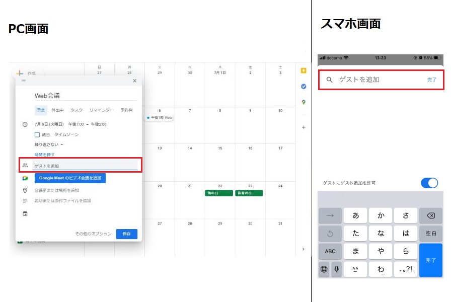 スマホの場合は、「保存」をタップしたタイミングで、参加メンバーに招待メールが送信されます。パソコンの場合は「送信」をクリックして、参加メンバーに招待メールを送信しましょう。