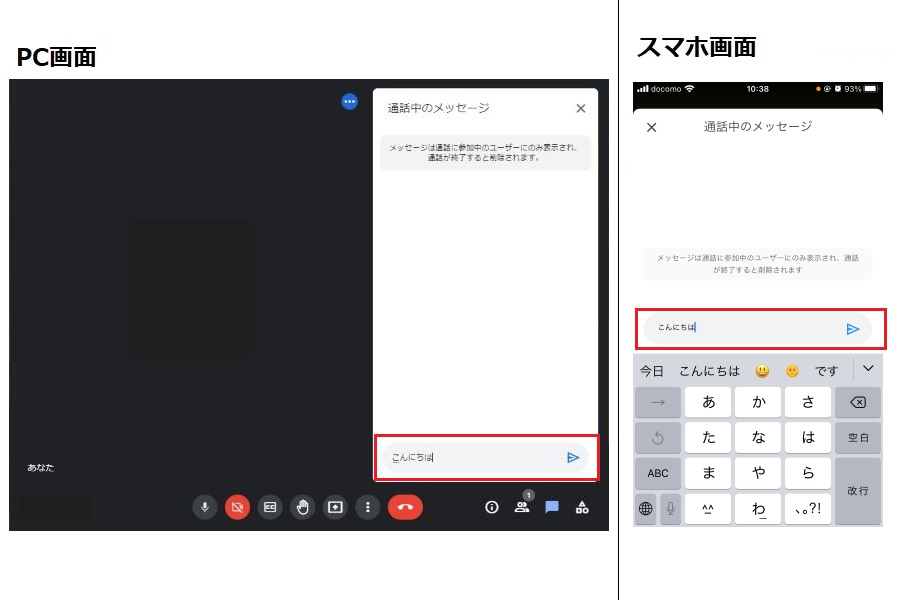 Google Meetでは、Web会議中に他の参加者へメッセージを送ることができます。会議進行中の意見発信や話題に出たWebサイト・資料のURL共有、音声トラブルが発生したときのヘルプなど、何かと便利な機能なので使い方を確認しておきましょう。