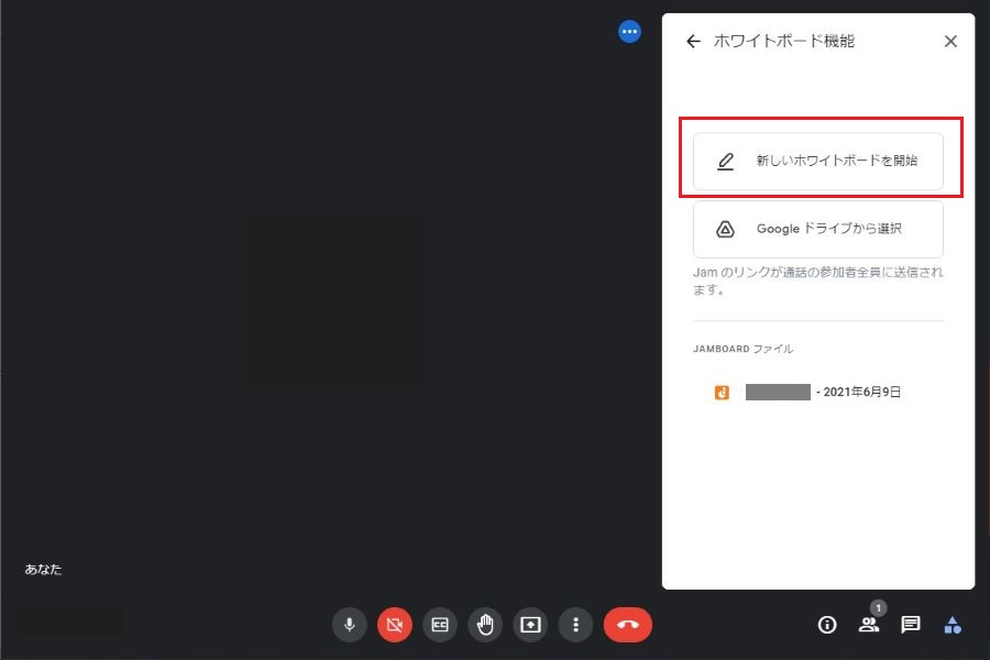 (2)「新しいホワイトボードを開始」をクリックすると、別タブでGoogle Jamboardが起動します。