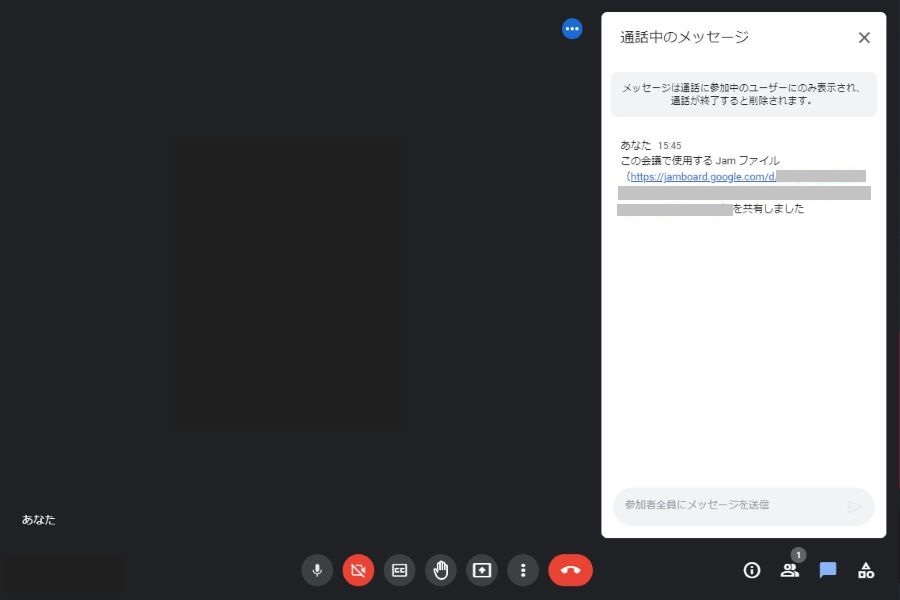 なお、作成されたGoogle Jamboardファイルは、自動的にチャット内で共有されます。