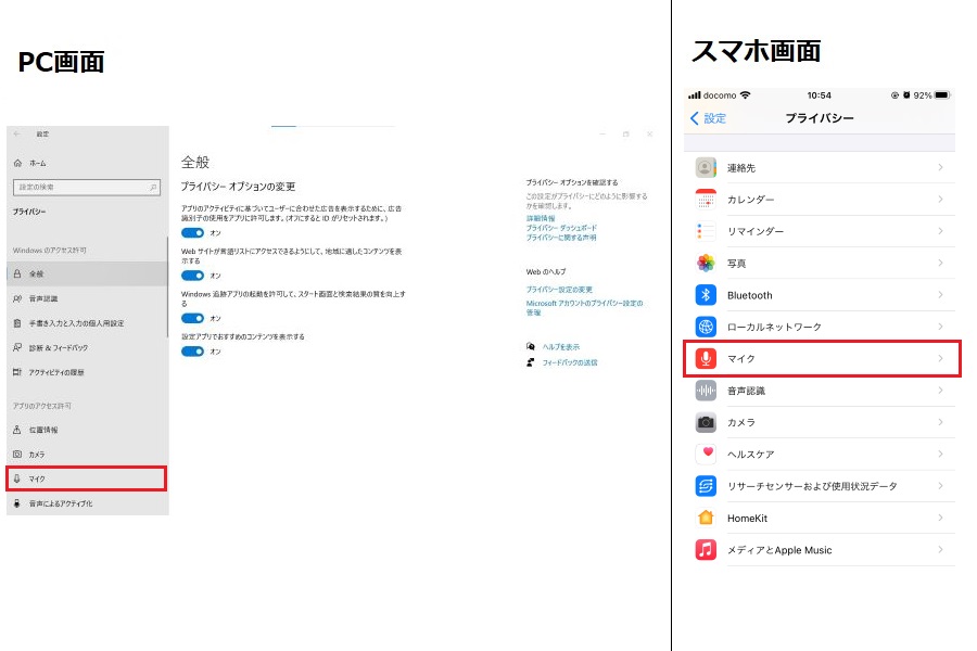 マイクが使えない場合も、プライバシー設定が関わっているかもしれません。確認手順は以下の通りです。