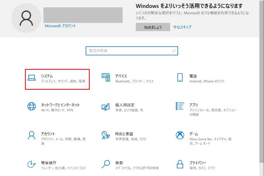 (1)端末の設定画面を開き、「システム」を選択する。
