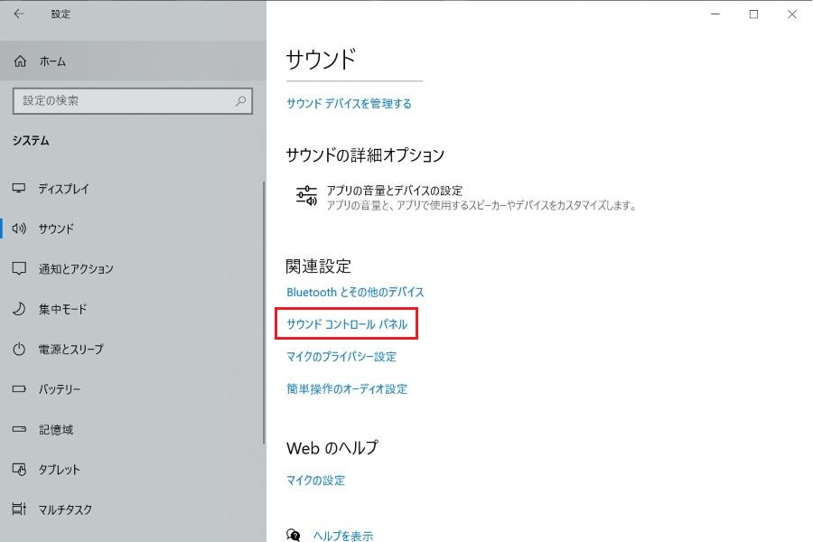 パソコンの場合は「サウンド設定」もチェック