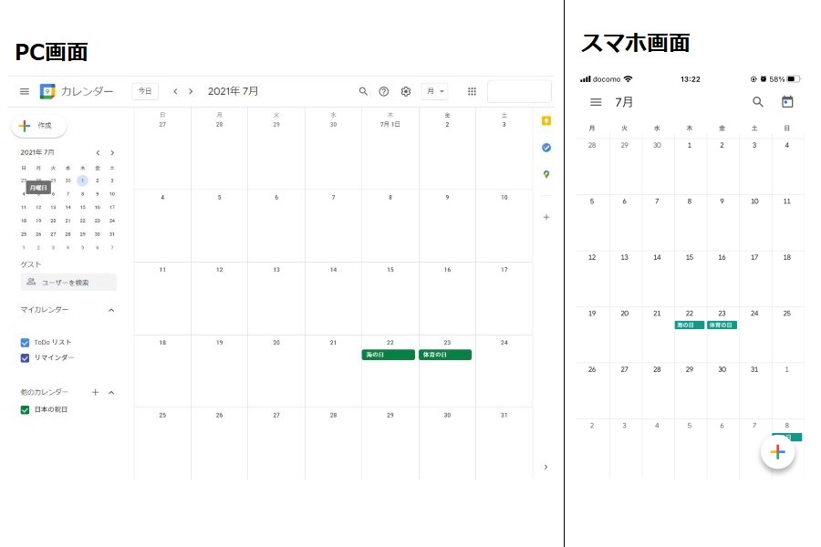 (1)Google カレンダー(iPhone・iPadアプリ、Androidアプリ)を開く。