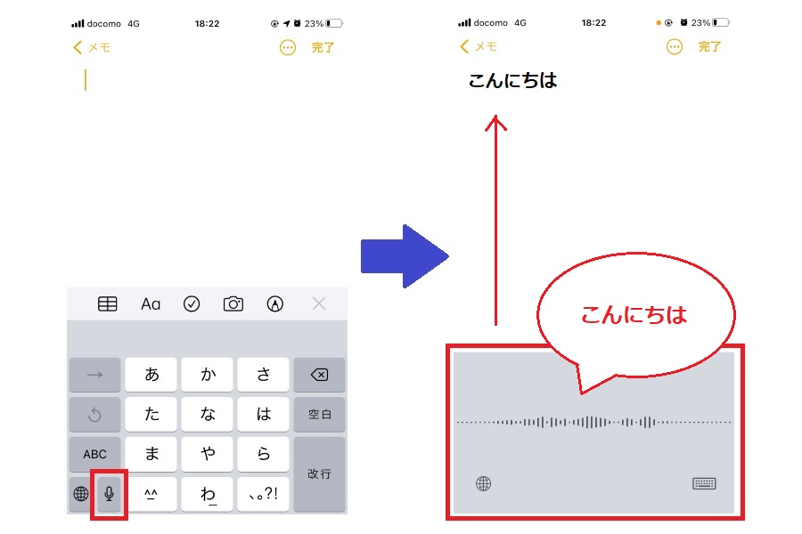 方法1.キーボード上にある「マイク」ボタンをタップして、音声を吹き込む