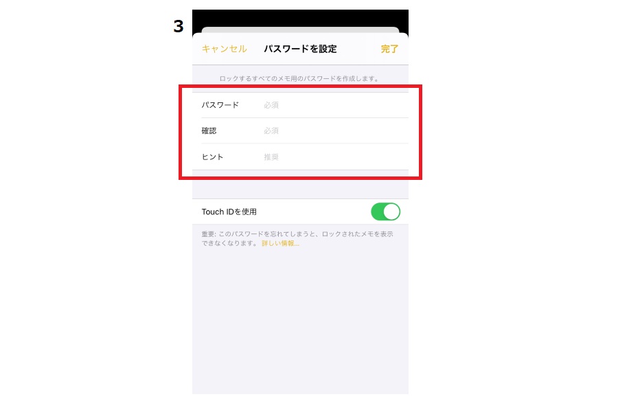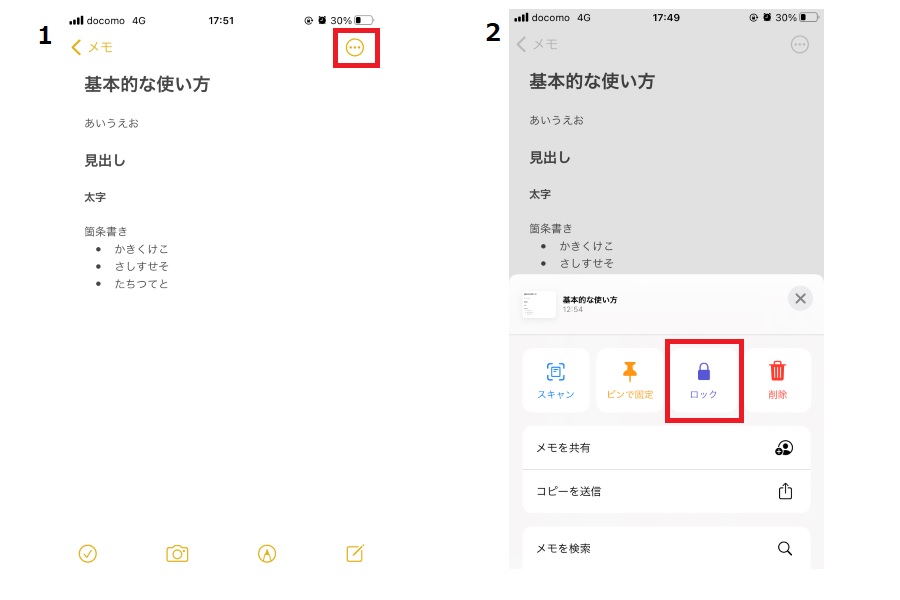 個人情報などの重要な情報をメモに残す場合は、セキュリティ対策のためにもロックをかけておきましょう。