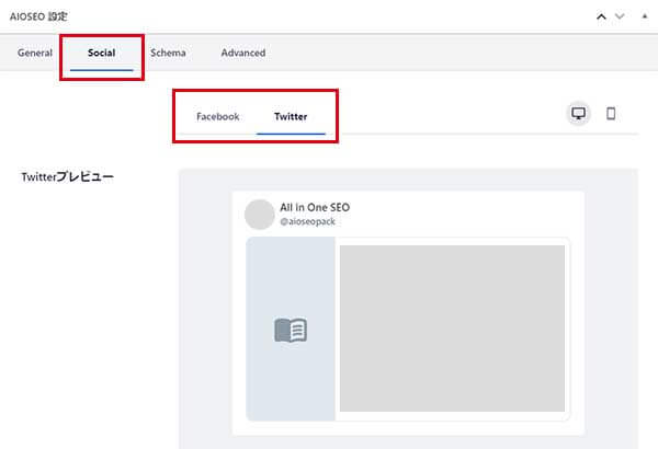 3、各記事ごとのOGP設定は「AIOSEO設定」の『Social』の項目から設定が可能です。