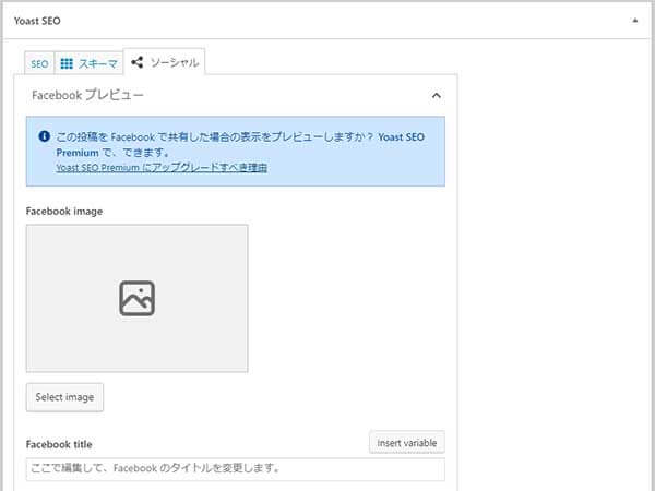 2、各記事ごとのOGP設定は「Yoast SEO」の『ソーシャルタブ』から設定ができます。