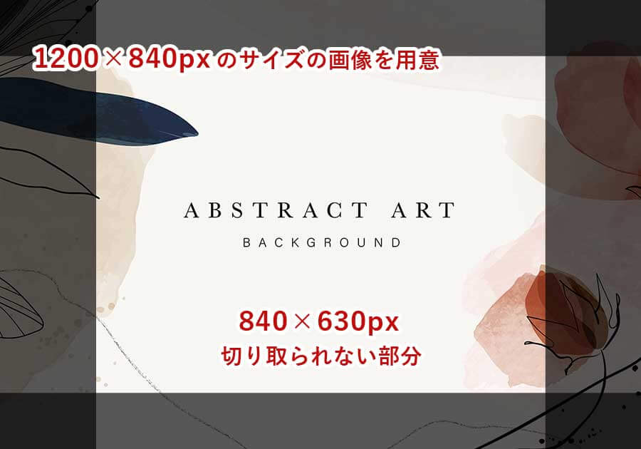 Twitter、Facebookは前述のとおり1200×630pxなので、上下が切り取られます。そして正方形のLINEに対応させようとすると、中央の840×630pxの部分に、テキストなど重要な要素を配置すると、1枚の画像で対応することが可能です。