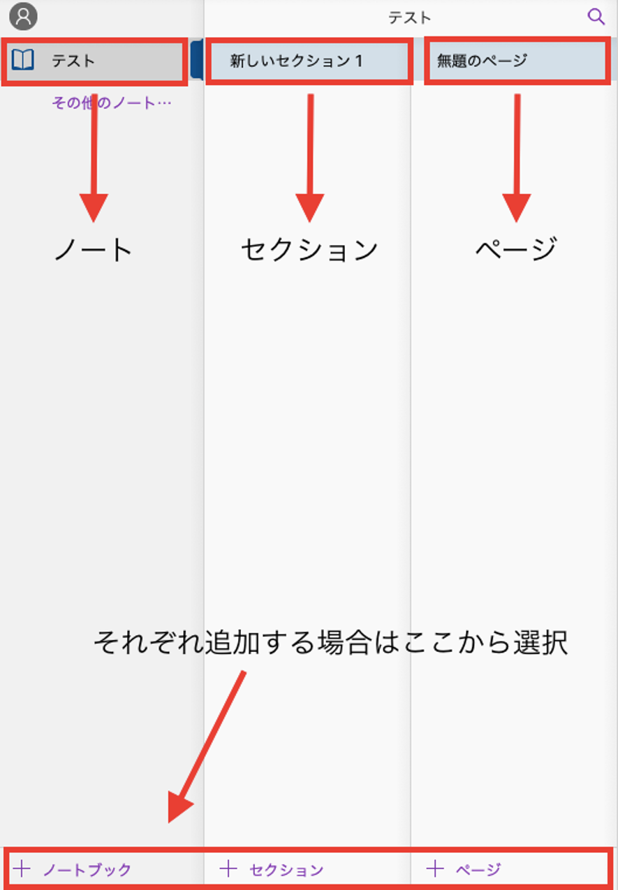 ノートの中に項目を作成し、細かく分けることができるのがセクションです。例えば「仕事」でノートを作成した場合、タスクやリストごとに分けるといったことができます。