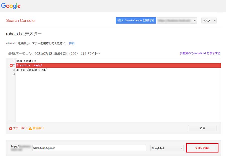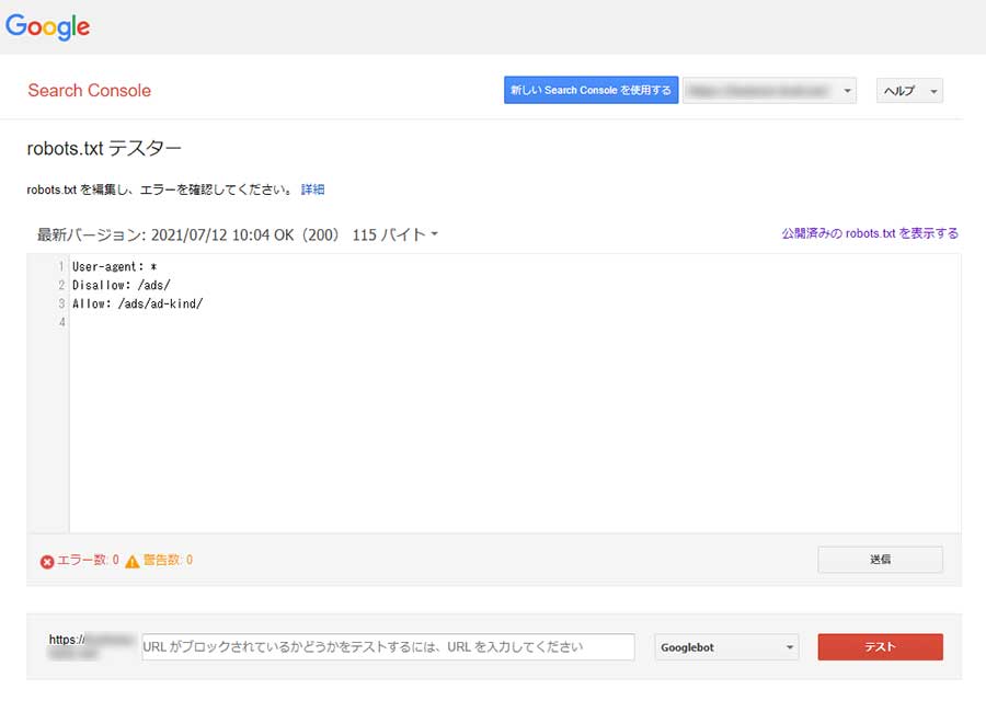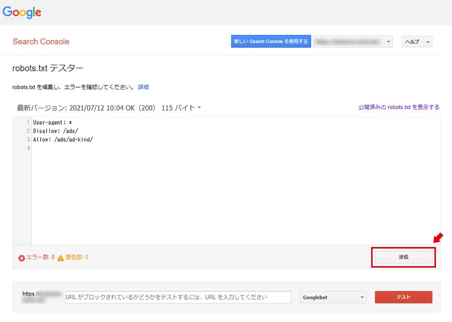 robot.txt はアップロード後、すぐに修正が反映されるわけではありません。なるべく早く反映させたい場合は「robots.txtテスター」から、更新をリクエストするようにしましょう。