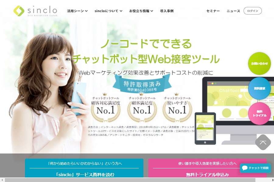 「sinclo」は、コンタクトセンターシステムメーカーである「メディアリンク」が開発したチャットボット型のWeb接客ツールです。
