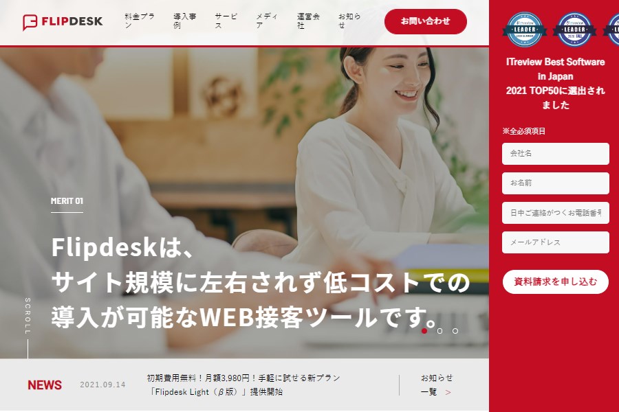 「Flipdesk」は、2021年9月時点で 1,000社・ 1,300サイト以上の導入実績を誇るWeb接客ツールです。
