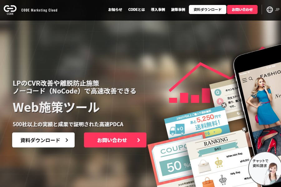 「CODE Marketing Cloud」は、Webサイトのパーソナライズ化をサポートするマーケッター向けのWeb接客ツールです。