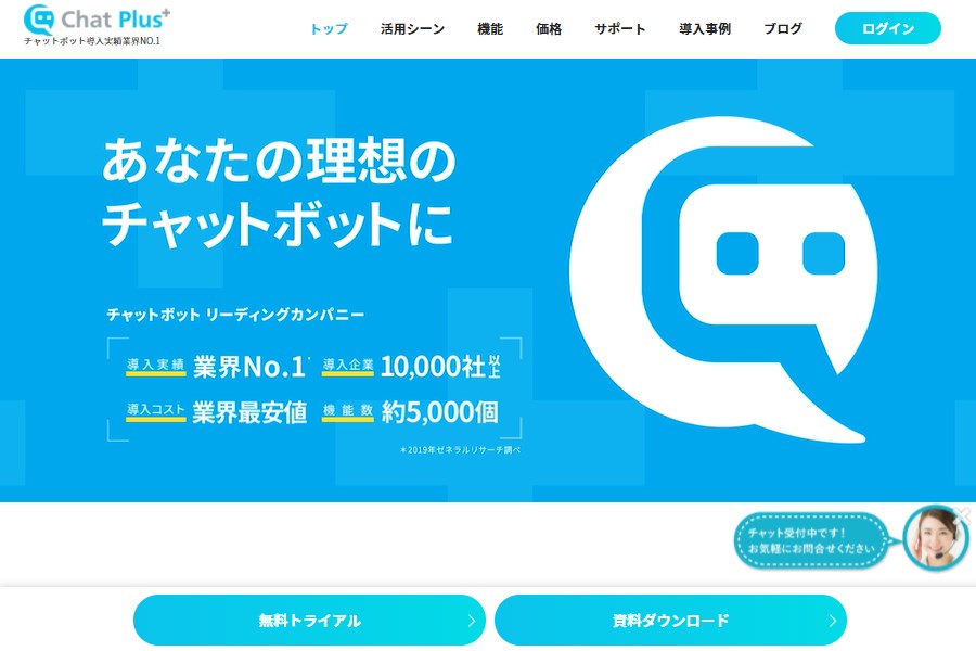 「チャットプラス」は、AI搭載型のチャットツールです。チャットボットによる自動応答と有人応答の両方に対応しており、チャットボットはプログラミングの知識がなくても簡単に作成できるようになっているため、初心者でもスムーズに運用できます。