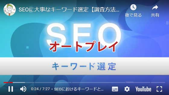 ページにアクセスした際に、自動で動画を再生させたい場合は、オートプレイをONにして、自動再生を有効にします。