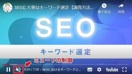 上記の自動再生を行う際は、いきなり音が鳴ることを避けるために、音量をミュート(消音)にしておくと訪問してきたユーザーに対して親切です。