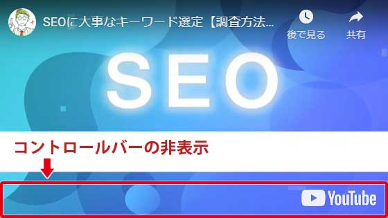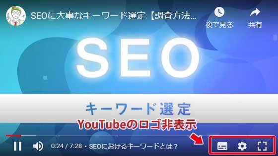 コントロールバーに表示される『YouTube』のロゴの表示・非表示を制御することができます。ロゴをクリックして、YouTubeのサイトに遷移されるのを防ぎたい場合などに使用します。